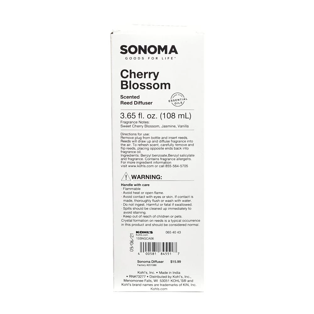 Fill your home with the refreshing, springtime-inspired scent of this Sonoma Goods For Life Cherry Blossom reed diffuser.